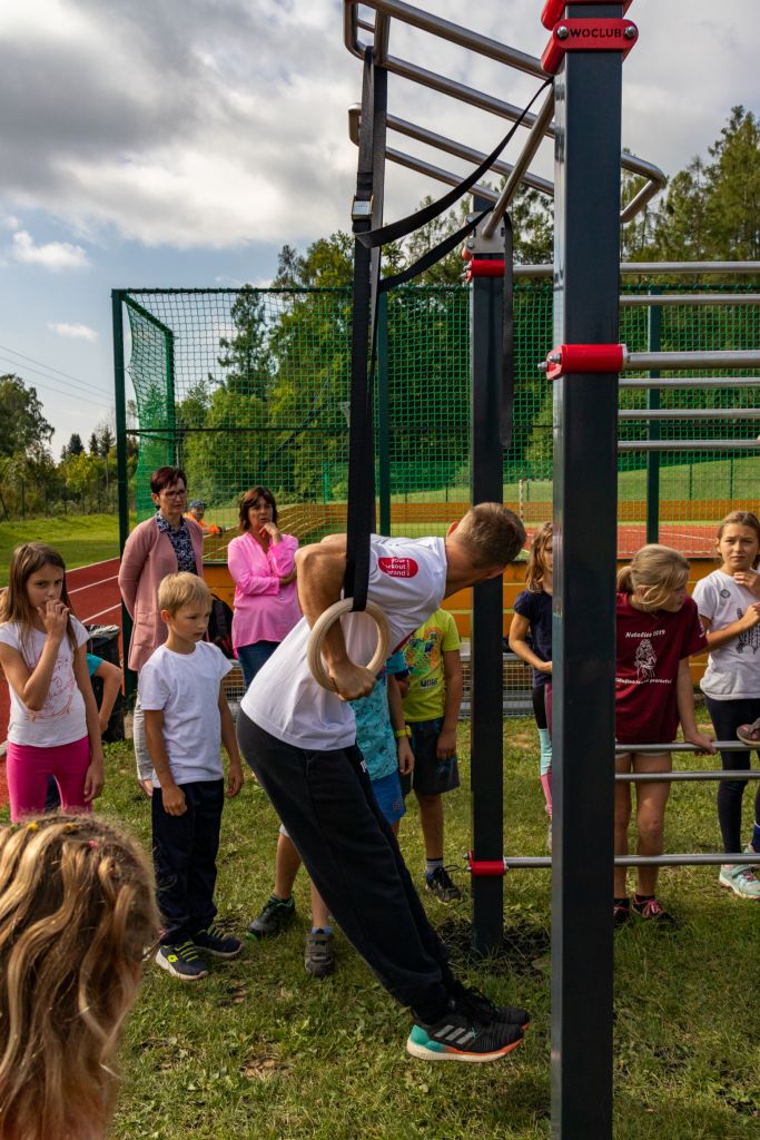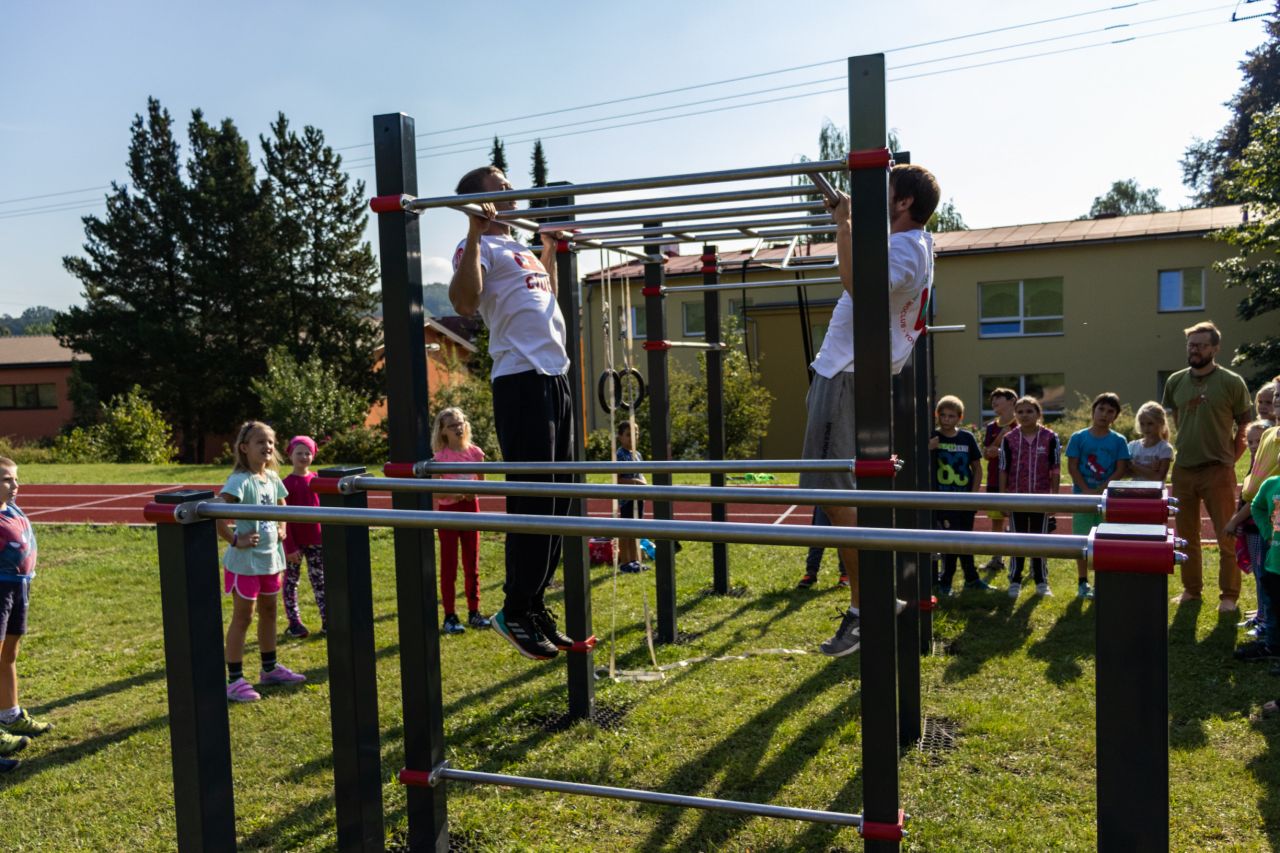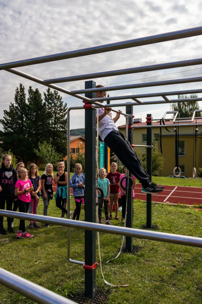 V pátek 13.9.2019 dopoledne proběhla na workoutovém hřišti nad školou exhibice, kterou předvedli zkušení sportovci, kteří se dlouhodobě zabývají cvičením vlastní vahou, což je princip cvičení na workoutových hřištích.
